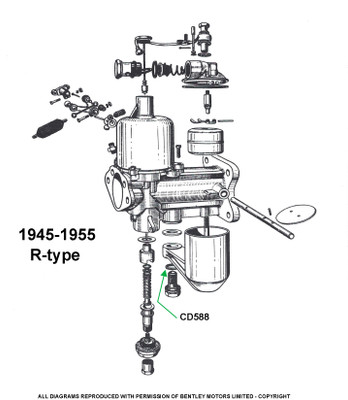 quick view Add to Cart Washer Float Body to Main Carburetor R-type ONLY (CD588) MSRP: $4.95 This is the washer for the float body to main carburetor bolt. Rolls offered two different types for the customer to choose from. CD588 metal washer or CD587 fiber washer Note: 2 Required Per Bolt (Sold Each) 1945-1955 R type... Add to Cart