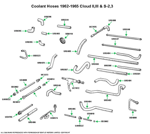 This is the return & heater tap hose. 1959-1965 Return Hose - Standard models from Silver Cloud II (from SAE85) and Bentley S2 (from B22DW) 1959-1965 Heater Tap Hose - all Series 2 & 3 LWB,...