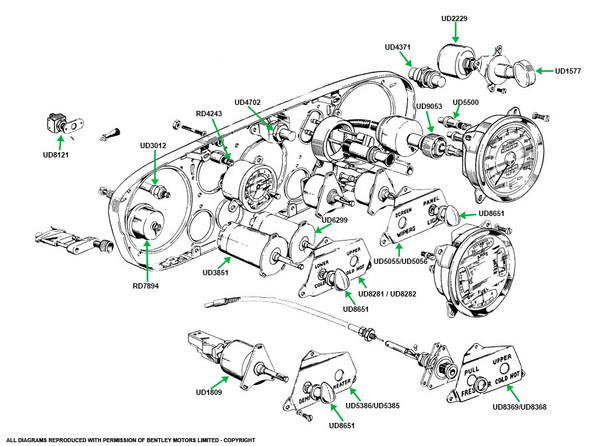 This is a 12v 2.2w bulb that is used in the dashboard components. This bulb is used with bulb holder (UD9048) 1946-1955 Bentley MkVI & R Type, RR Silver Dawn & Silver...