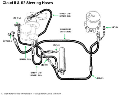quick view Add to Cart Hose Control Valve to Ram LHD (UR5011) MSRP: $415.59 This is one of the high pressure steering hoses between the power steering pump and the ram. 1959-1965 Cloud II,III, S2,3 & Continental S2 & S3 RHD models it fits between the steering box and the front of the ram on all models prior to SGT399... Add to Cart