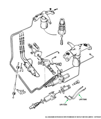 This is the Rear high pressure accumulator hose. 1966-1980 Camargue, Corniche, Silver Shadow, T-series, Shadow II, T-2, Silver Wraith II