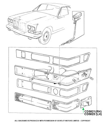 quick view Add to Cart Tail Lamp Lens LH Red & Amber (CD5843) MSRP: $118.74 This is the left hand tail lamp / directional lens in amber and red color. 1977-1979 Camargue Models Only VIN JRG50001-JRX50776, JRH14674-JRH26708, JRH30015-JRX33187 Add to Cart