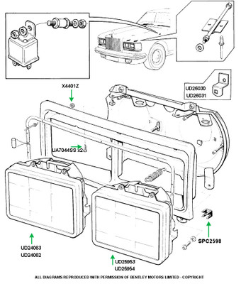 quick view Add to Cart Right Hand Inner Square Headlamp (UD24062) MSRP: $240.54 This is the right hand inner small square headlamp unit for US and Japanese spec cars with two pairs of small square headlamps. 1985-1993 Eight, Mulsanne, Spirit, Spur (VIN 12001-46781) Add to Cart