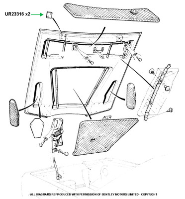 quick view Add to Cart Packing Piece Bonnet Catch Bracket (UR23316) MSRP: $41.48 This is the packing piece for the hood / bonnet catch bracket. There are 2 required per car and each sold separately. 1985-1998 Eight, Mulsanne, Spirit, Spur, Turbo (from VIN 12884 onward) Brooklands, Continentals, Corniche (from 30000 onwards) Add to Cart