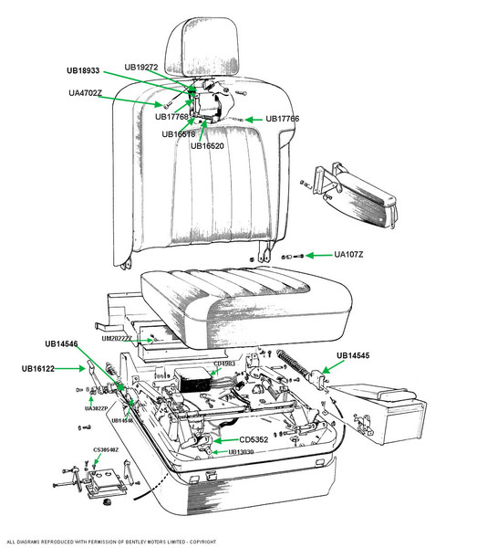 Locking Tab Headrest Guide Front Seat 1970-1980 Shadow, Shadow II, T, T2, Wraith II, Corniche (from VIN 9001-39200)