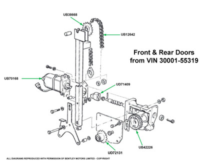 This is the Driving Gear & Sprocket for the Window Lift assembly (UB32485).