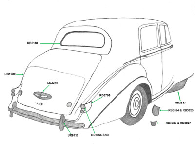quick view Add to Cart Tail Lamp Mounting Pads for Long Boot (RD6706) MSRP: $53.12 These are the seals that sit between the casing that holds the rear lamp and the rear wing on the R Type. 1952-1955 Later type Long Boot (Trunk/Boot Lid lifts up) Add to Cart
