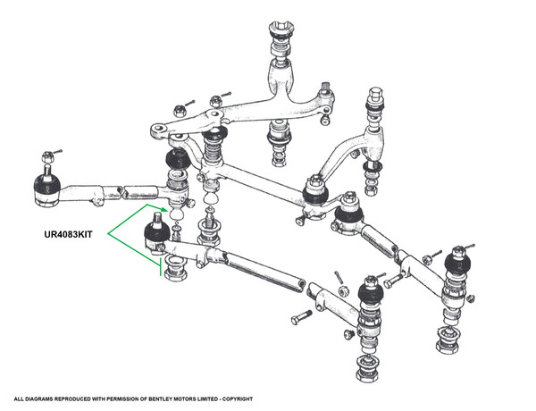 This kit contains all of the safety critical parts for the steering track rod pin assembly. The kit contains the main plug UR4064, the pin UR4083, spring RF7552, spring seat RF7556, ball bearing RF8789 and two shims. Full fitting instructions are supplied with the kits. These kits have been developed after extensive research. They are an improvement on the original standards specified by Rolls-Royce and have TUV Rhineland Functionality Quality Standard Certification.