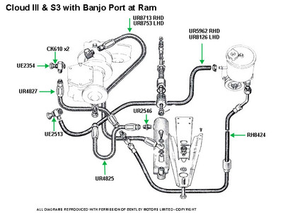 On Left Hand Drive cars this is the front hose from the steering box to the steering ram. Late Silver Cloud III (From SGT399), S3 (From B222FG), Phantom V (5VF1-5VD101)