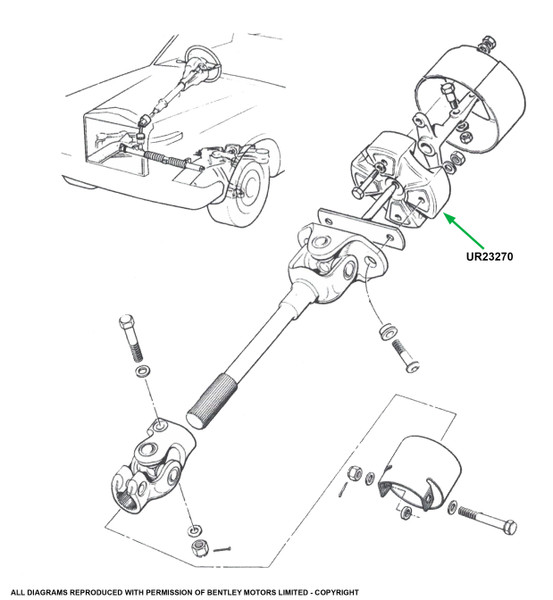 This is the main rubber coupling for the lower steering column. It can be used on the early columns but you may also need 4 bolts SPC3244, 8 washers WHT002850 and 8 nuts UA302Z.