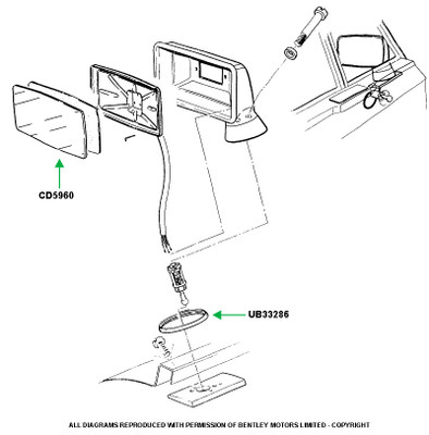 quick view Add to Cart Door Mirror Pedestal Seal (UB33286) MSRP: $66.67 This is the gasket that sits between the mirror and the door. 1977-1980 Shadow II, T-2, Silver Wraith II (VIN 30001-41686) 1977-1982 Corniche (VIN 30003-50757) 1981-1982 Corniche (VIN 01557-05036) Add to Cart
