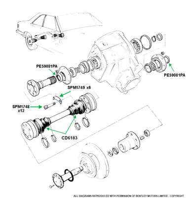 quick view Add to Cart Differential Output Shaft Oil Seal LH or RH (PE59081PA) MSRP: $145.63 This is the LH or RH output shaft final drive oil seal. 1981-1998 Silver Spirit, Silver Spur, Mulsanne, Turbo R, Pre Arnage, Azure Add to Cart